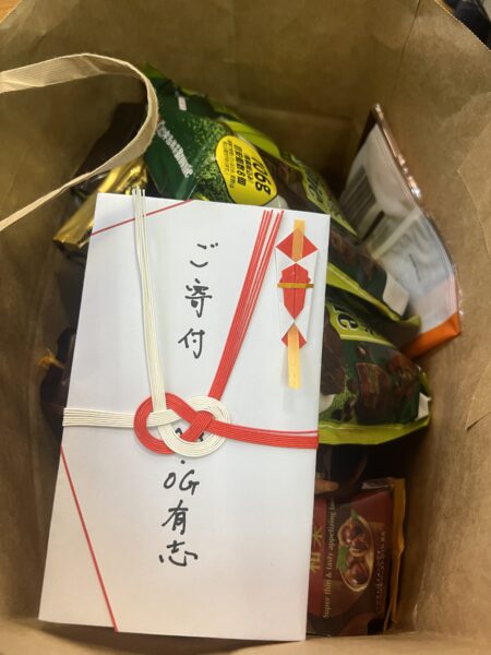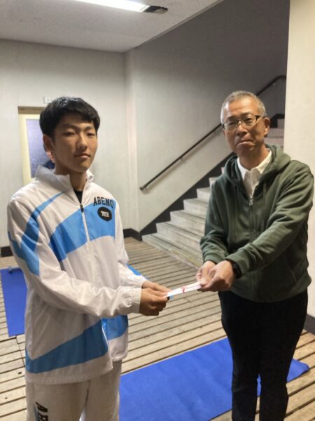 29期の川村茂美部長から寄付を渡していただき、79期の現部長と実に半世紀を超えた交流をすることができました。いただいた寄付は、ウエイトマシン、ペースクロックの購入に充てさせていただきます。たくさんのお菓子の差し入れもありがとうございました。