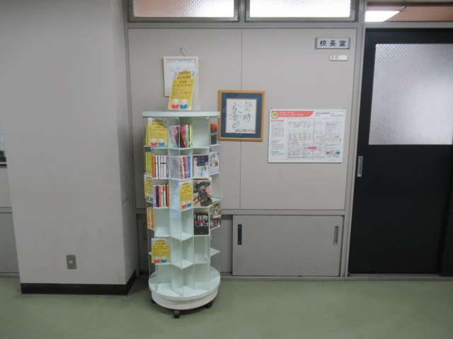 生徒のみなさんは校長室前を通りかかった時、自由に覗いてみてください。気に入った本があれば自由にどうぞ・・・。
