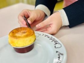 今回の題材は『スフレ・ア・ラ・ヴァニーユ』。自力で、きめ細かいメレンゲの泡立てを頑張りました。その結果、見事、全班きれいに膨らみました!