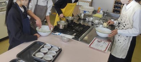 12月8日(月)放課後、辻調理師専門学校の講師の先生に来ていただき製菓実習をおこないました。