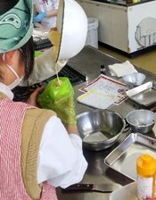 家にある材料で作れる点も、このお菓子の良いところ。たくさんの先生方にも応援に来ていただき、生徒も励みになったと思います。