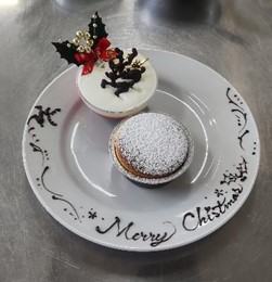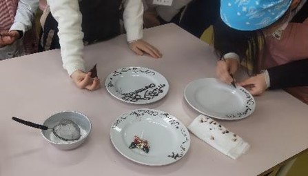 「賞味期限は最も膨らんでいる30秒間」と言われるこのお菓子、焼き立てを口にした瞬間の生徒の感動の声、声。チョコレートで文字を書く経験もさせていただき、各々試行錯誤して書いておりました。