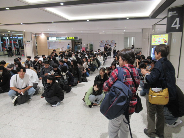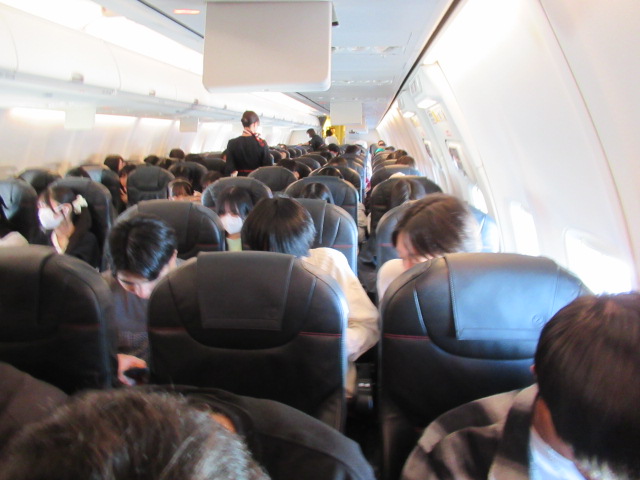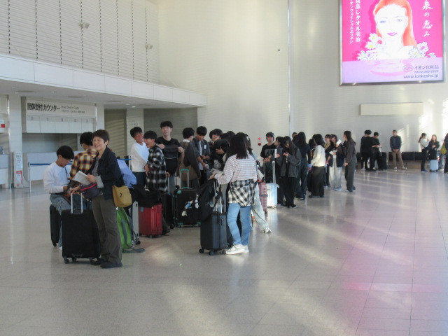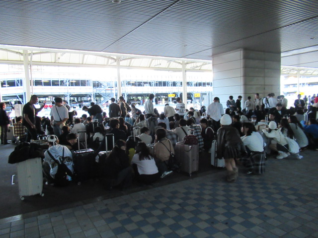 10月15日(水)、2年生の北海道修学旅行が始まりました。朝から前団1・2・3組、後団4・5・6・7・8組の2班に分かれて伊丹空港に集合し、予定通りJAL便8:05とANA便8:30で北海道へ出発しました。