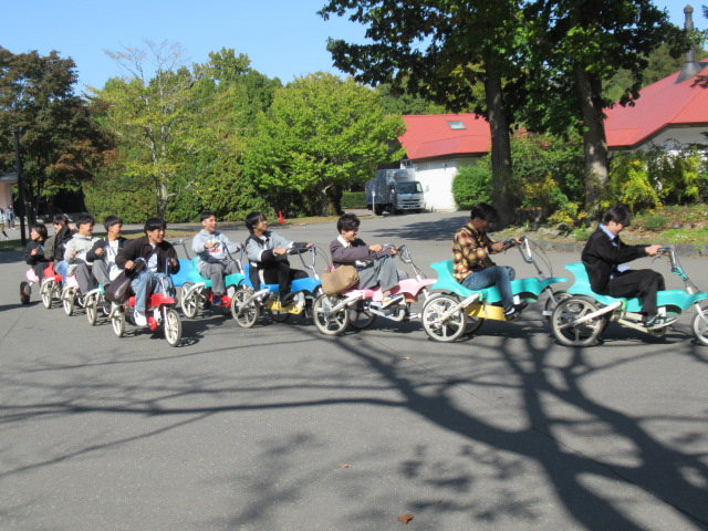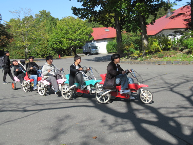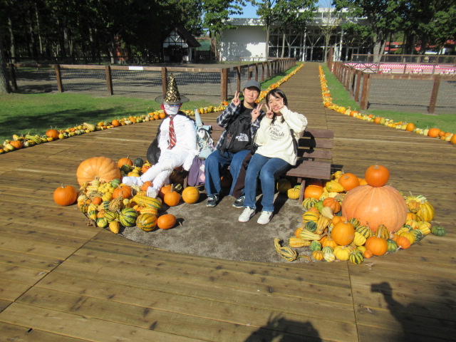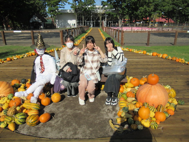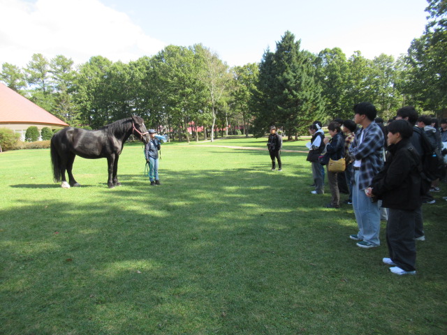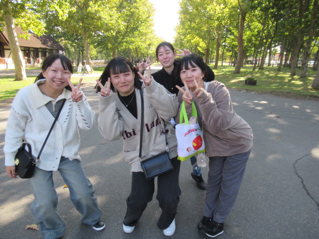 ノーザンホースパークではジンギスカンの昼食後、少し紅葉かかった北海道の大自然を自由散策、ひき馬体験やサイクリング、広い敷地のガーデニングを楽しみました。名物のソフトクリームをたくさんの生徒が食べていました。