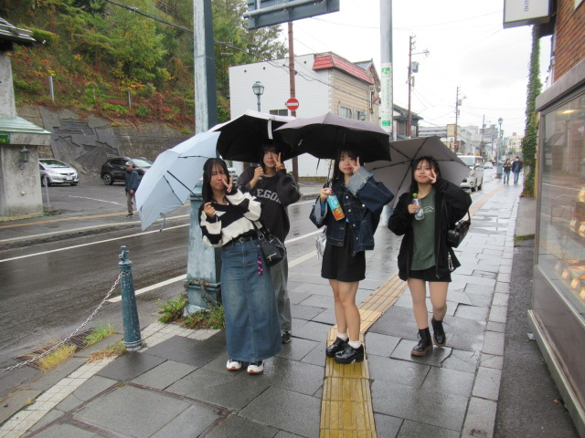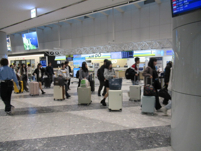 小樽観光では、グループでの自由散策を楽しみ、おみやげや食事など海産物豊富な港町を体験し、集合時間にクラス別にバスに戻り、新千歳空港から大阪伊丹空港へ帰路につきました。
