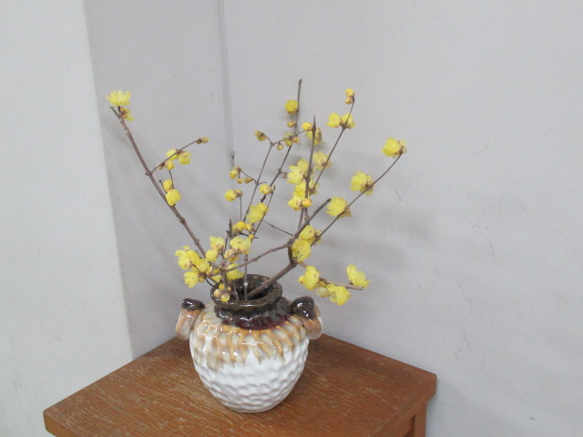 事務の方が、校内に咲く黄色の蝋梅を校長室前に活けてくださり、いい香りを漂わせています。