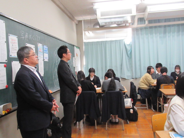 10月28日(火)5限、大阪府教育長の水野教育長が来校されました。5限目が総合探究の時間でしたので、各学年の取組みを見学していただきました。
