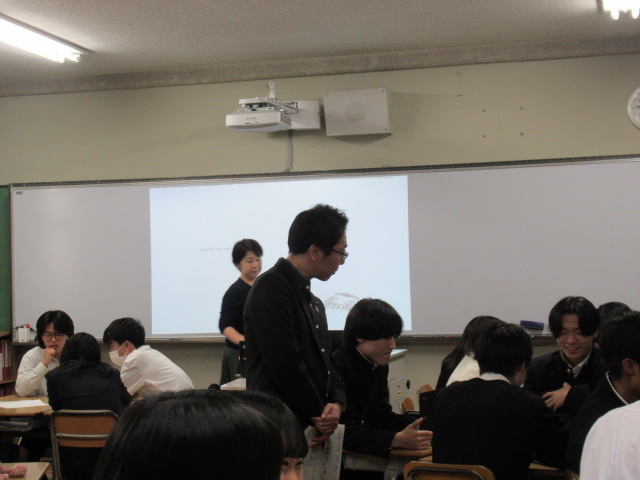 1年生は学年集会で諸連絡の後、来年度に取り組む修学旅行の発表があり喜び盛り上がる姿を見学いただき、2年生は先日の北海道修学旅行を振返り学習した発表を見学いただきました。3年生は担任授業で各テーマに沿った授業を担任担当者が実施。国語科田中先生は『キャッチコピー対決』のテーマで、「言葉はどう印象を変えるのか?商品を売り込むには?キャッチコピー対決で、伝え方を知ろう!」の内容を行いました。英語科田口先生は『絵本の翻訳チャレンジ~ことばを訳せば、こころが届く』のテーマで、「翻訳はただの作業じゃない。言葉の向こうにある心に、そっと触れる。そんな翻訳を、あなたの手で。」を見学いただきました。