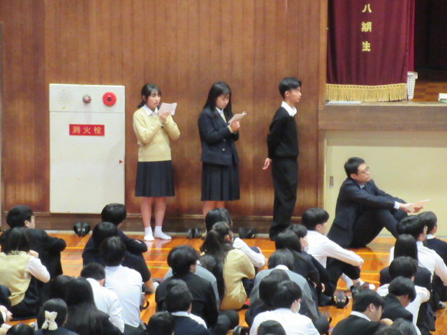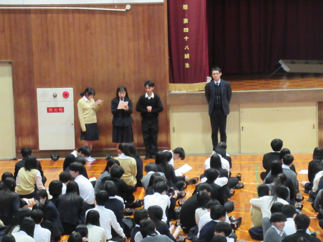 10月28日(火)6限、体育館において令和7年度後期生徒自治会役員の立会演説会及び選挙を実施しました。選挙管理委員会の進行で候補者が演説を行い、演説終了後、担当先生から諸連絡があり教室に戻って投票となりました。今回は全員が対立候補がなく信任投票する選挙となりました。
