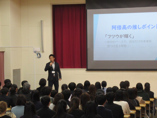 12月6日(土)、第2回学校説明会を第1部9:00、第2部11:00、第3部14:00と3回に分けて実施しました。司会担当の進行で校長挨拶、首席より学校紹介、在校生からの動画、校内見学、解散後の質問や個別相談を行いました。校内見学では図書館、食堂、コクリエイトベース(多目的室)、体育館などを見学いただきました。事前予約制でたくさんの生徒と保護者の方に参加いただきました、ありがとうございました。