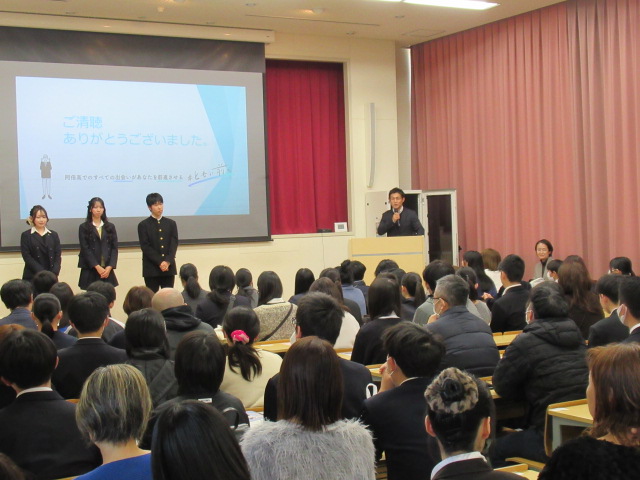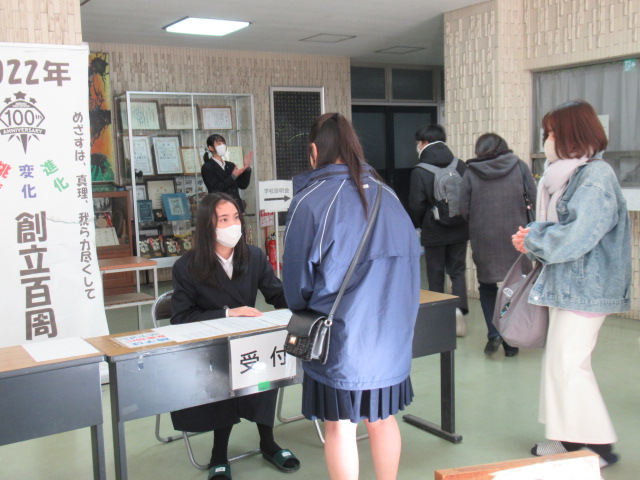 1月10日(土)午前10時と午後1時の2回に分けて第3回学校説明会を行いました。今回は、自治会生徒と有志生徒の協力があり、受付や校内見学ツアーを手伝ってくれました。