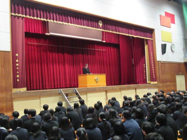 1月8日(木)、まだまだ朝が寒いですが、今日から3学期が始まりました。生徒たちは通常通りに登校し、1限は始業式からスタートとなりました。